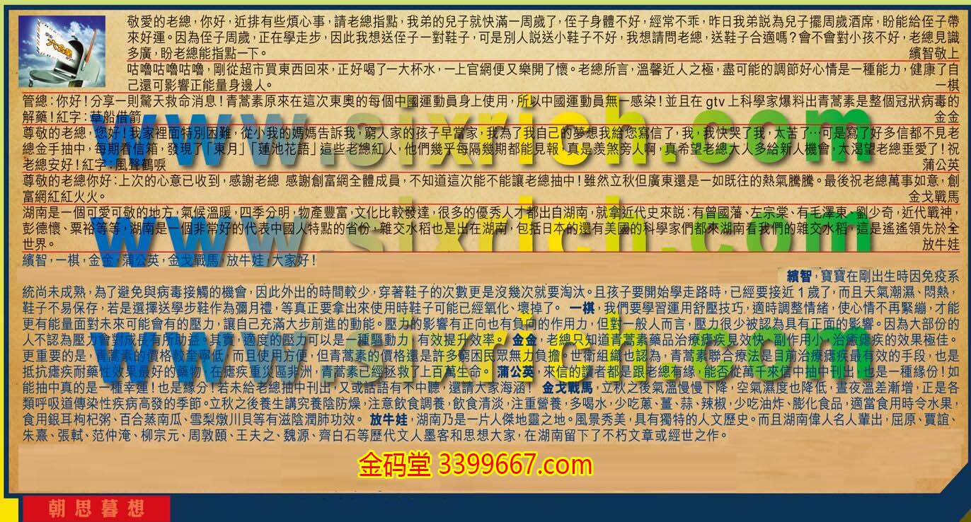 【4】.尊敬的老總:您好!我家裡面特別困難,從小我的媽媽告訴我,窮人家的孩子早當家,我為了我自己的夢想我给您寫信了,我,我快哭了我,太苦了...可是寫了好多信都不見老總金手抽中,每期看信箱,發現了「東月]「蓮池花語」這些老總紅人,他們幾乎每隔幾期都能見報,真是羡煞旁人啊,真希望老總大人多給新人機會,太渴望老總垂愛了!祝老總安好!紅字:風登鶴唳  蒲公英