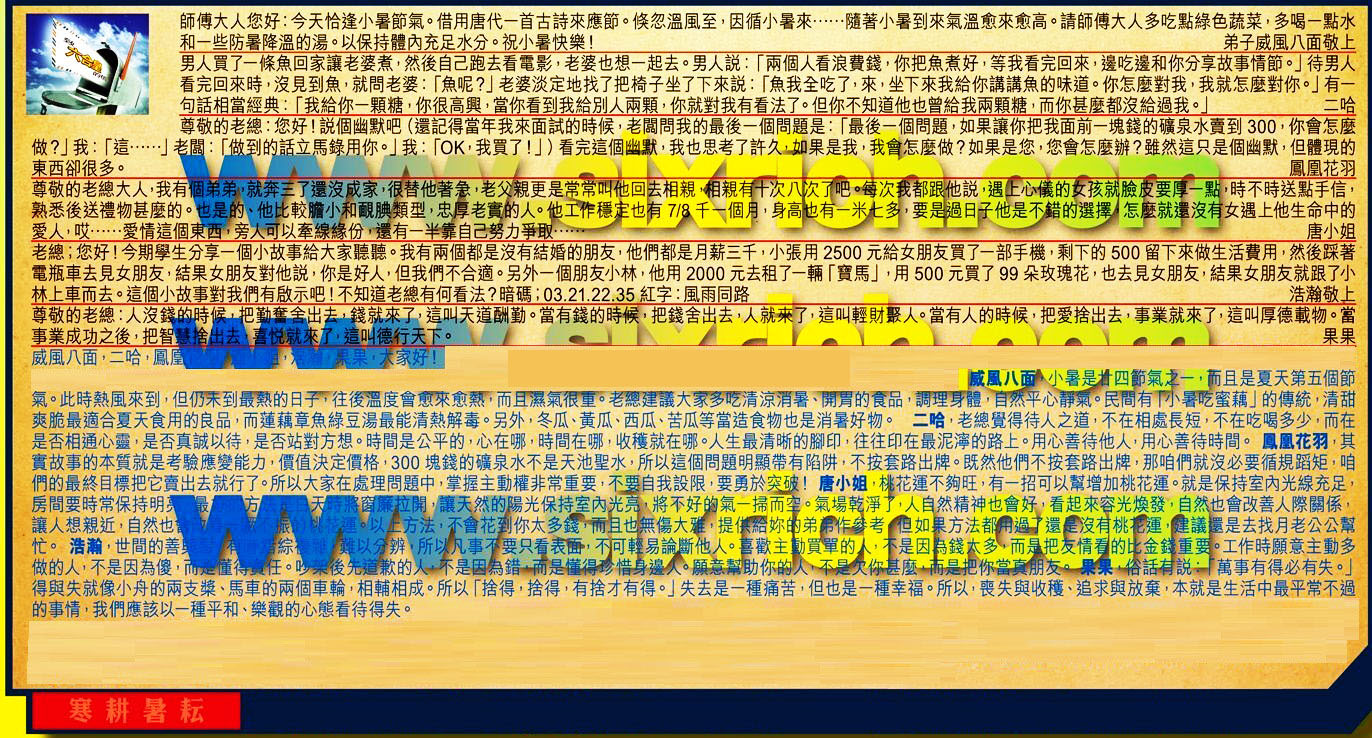 主题 : 044期:六合皇红字【寒耕暑耘】暗码《03 13 33 38》
